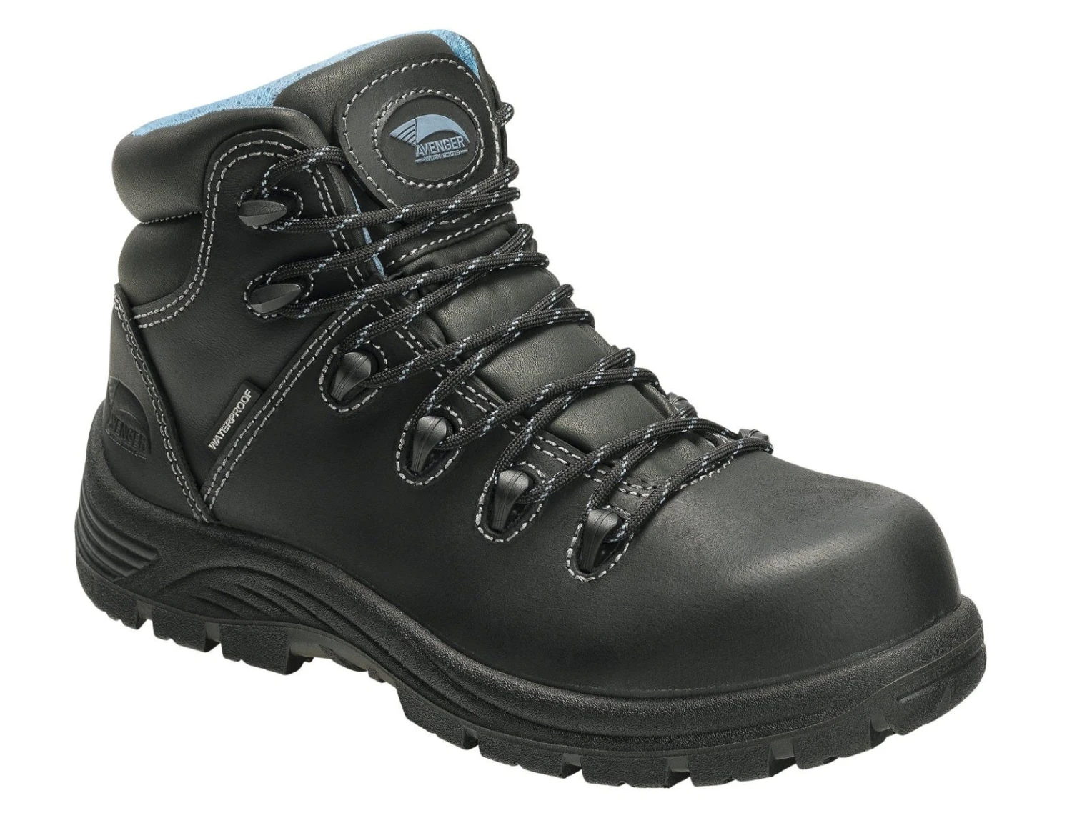The traditional lace-up Avenger boots have a lacing system that consists of metal hardware with fabric laces to provide a secure fit. This Framer black style features composite safety toe caps that meet or exceed the ASTM F2413-18 I/75 C/75 standard for impact and compression hazard protection. For your benefit, these puncture-resistant waterproof boots meet EH (electrical hazard) standards as well.
