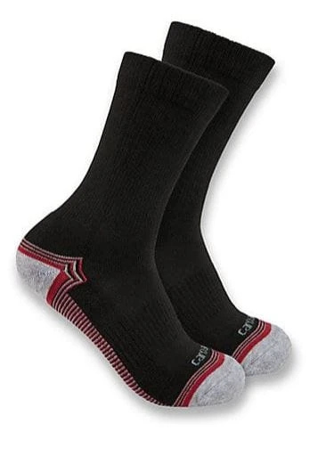 Everyday socks you can wear year round. These comfortable, women’s crew socks are made of sweat-wicking yarn and have a reinforced heel and toe for durability. The reinforced arch and ankle adds support.