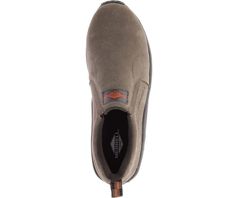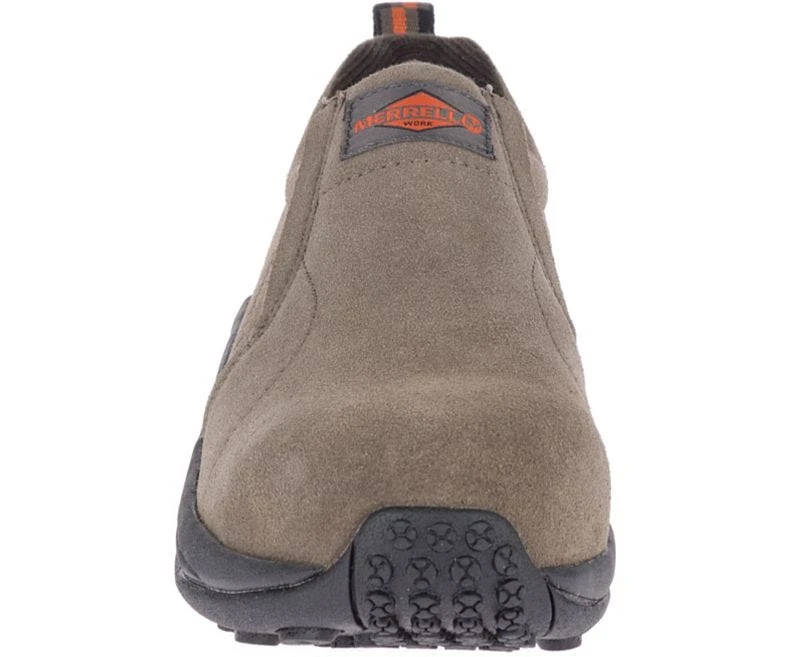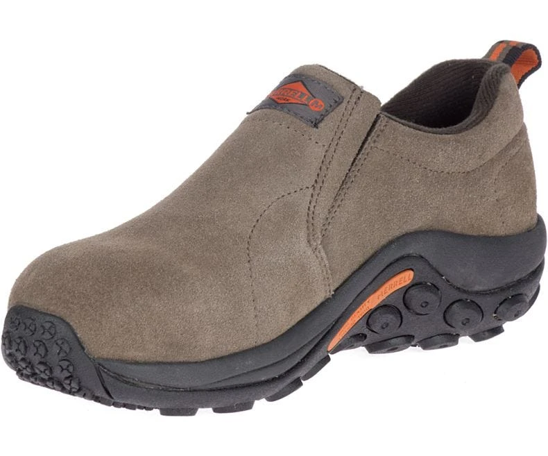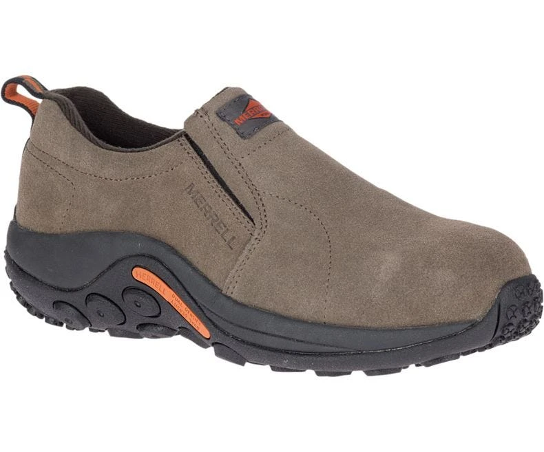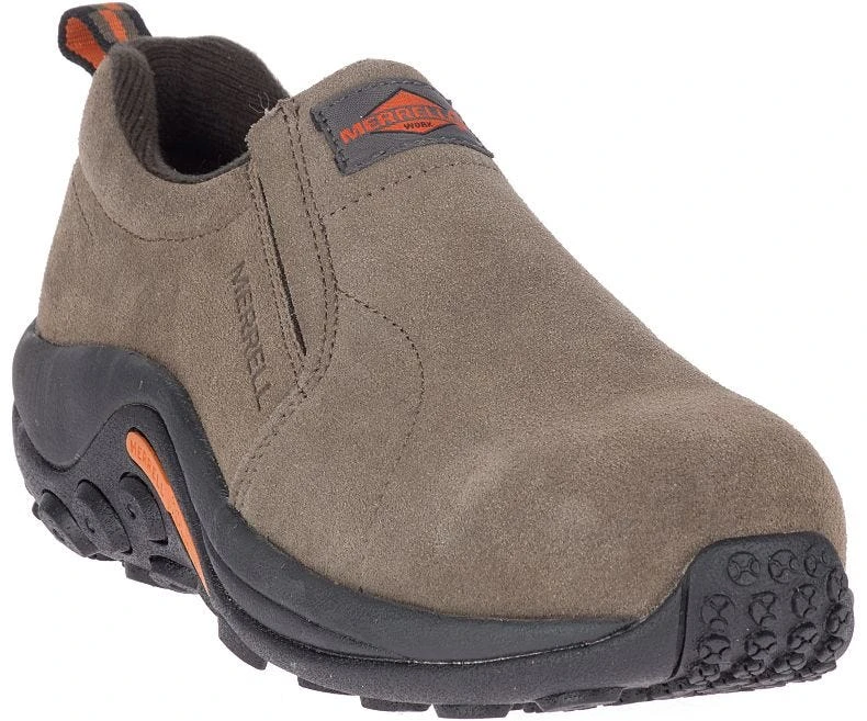 Slip into a pair of these Merrell Jungle work shoes and enjoy their waterproof suede leather uppers right from the start. The interiors contain a breathable mesh lining to allow moisture to escape with ease. Comfortbaseâ„¢ contoured footbeds also feature breathable foam, and these soft footbeds cradle your feet to provide all-day comfort. In addition, the women’s moc alloy toe shoes include Merrell air cushions in the heel areas to absorb shock and enhance stability. Also improving your steps at the molded nylon arch shanks to give you midfoot support and flexibility, too.