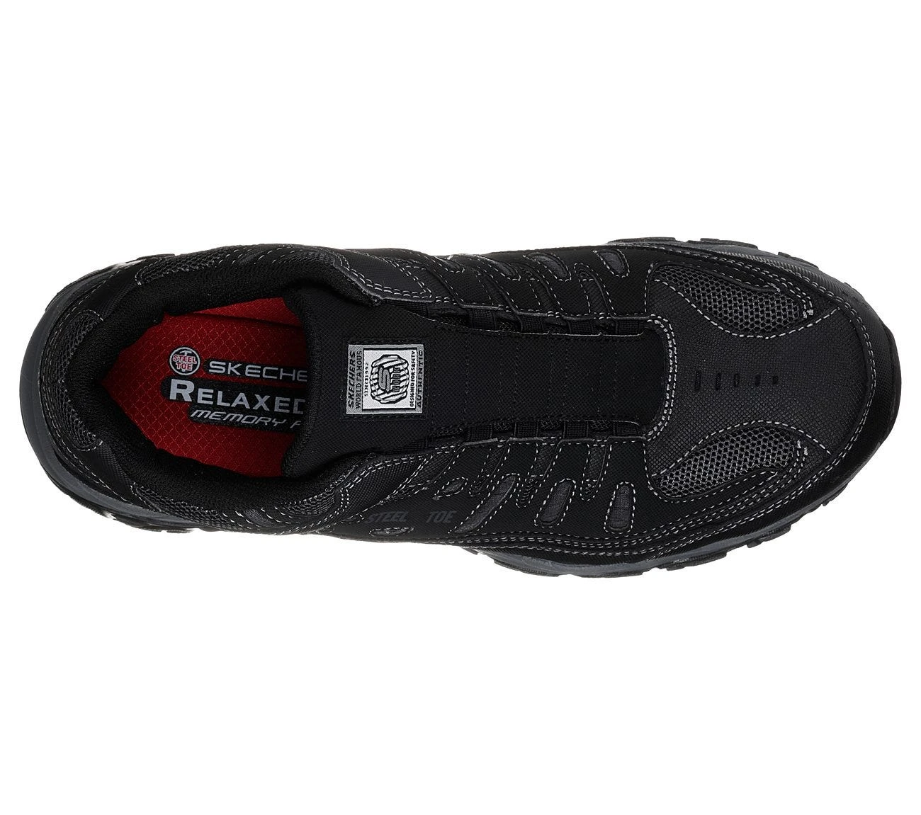 Action nubuck overlays, synthetic protective details, stitching accents, layered toe and side overlays, and Skechers logo details all come together to create the sporty, casual design of this men’s work footwear. Mesh fabric panels are in place for a cooling effect, while the high abrasion textured leather panels ensure abrasion resistance. This pair of steel toe slip-on sneakers also feature padded collars and tongues for enhanced comfort, and soft fabric shoe lining makes sure the interiors offer superior coziness, too. Inside, Skechers added Memory Foam full-length cushioned comfort insoles to give your diligent feet a great place to relax throughout the day with proper cushioning.