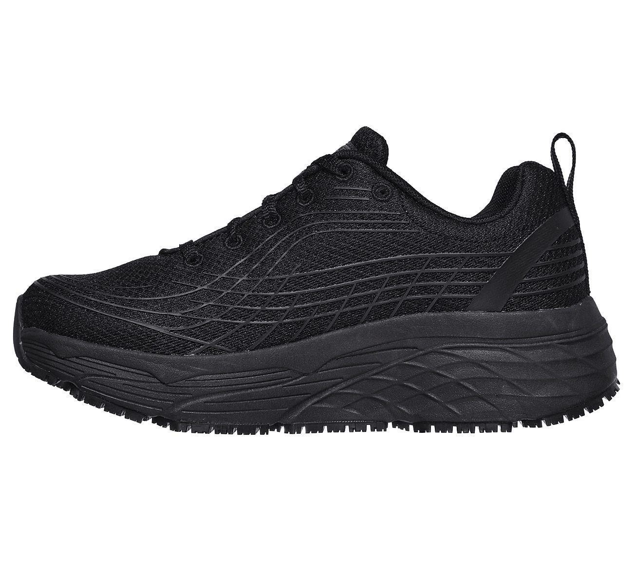 The traction outsoles on the Skechers black footwear are slip-resistant for excellent grip on surfaces, and the rugged outsoles are oil-resistant, too, for long-lasting wear. Forefoot flex grooves on the midsoles offer smooth transitions within your steps, and the midsoles of these women’s work shoes are very well-cushioned. Mid-foot strike zones promote efficiency in each stride you take, and a 2-inch heel height makes sure you have proper stabilization. These Max Cushioning slip-resistant shoes are ideal for standing and walking for extended periods of time.