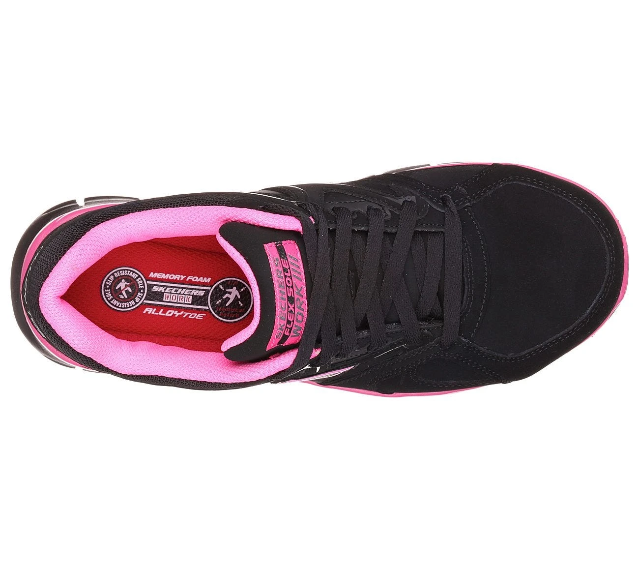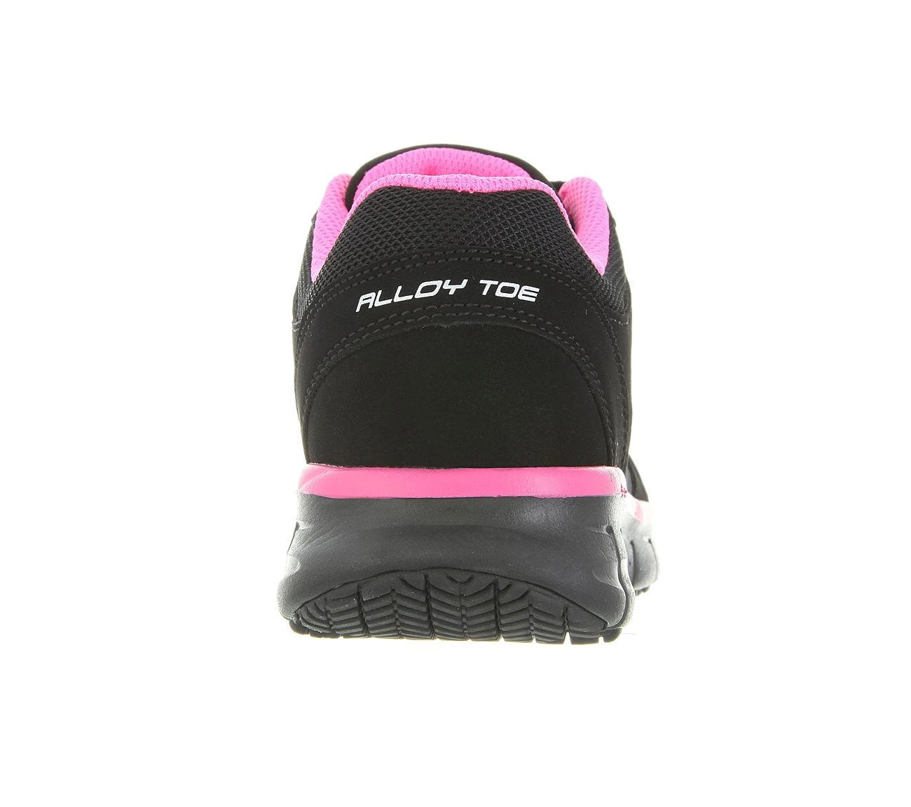 Finding women’s work footwear should be a simple task. At Working Person’s Store, we do whatever we can to provide excellent customer service to make sure you locate the best safety toe athletic shoes for you. Order these Skechers Women’s 76553 BKPK Black Pink Synergy-Sandlot Alloy Toe Athletic Shoes today!