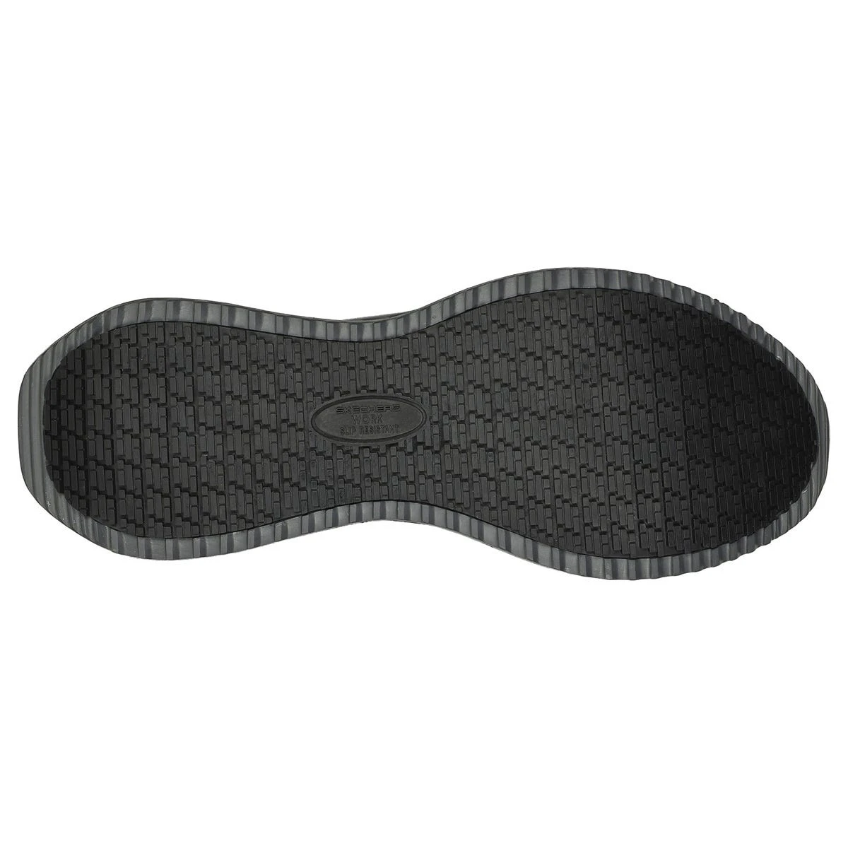 With a 1-1/4-inch heel height, these safety toe slip-on shoes provide a subtle lift that keeps you grounded while adding a touch of sophistication to your stride. Let the world know you’re walking in style with the distinctive Skechers® logo detail. It’s not just a men’s work shoe; it’s a signature statement.