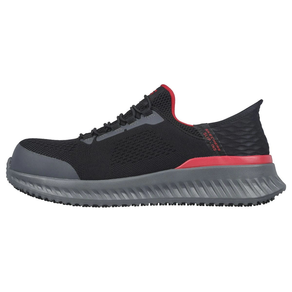 Get ready to slip into the future of work footwear with the Skechers Work Men’s 200206 BKRD Black Red Composite Toe Slip-Ins Tilido Fletchit Work Shoes. Don’t just step forward; step confidently into a world where style, comfort, and safety blend seamlessly. Your workday just got a major upgrade – are you ready?