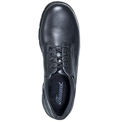 Make those long days a little easier on your feet. These U.S. Postal certified black shoes are designed for both functionality and comfort. This pair is made right here in the USA. This footwear is crafted with boast full-grain leather uppers and a sleek oxford design for long-wearing durability. The comfort weave lining of these soft street shoes surrounds your feet and keeps internal moisture away.