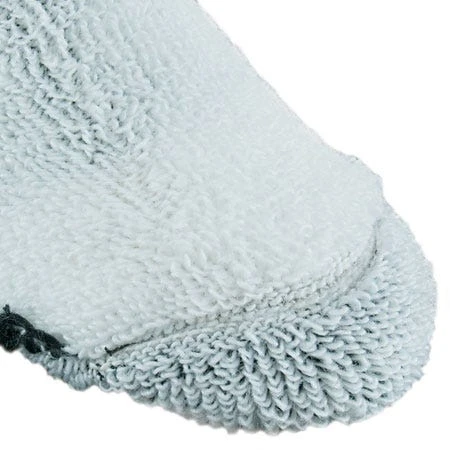 The rib-welted top and cuff of the socks provide durability, stretch, and a stay-put fit. Cushioning on the foot and leg of the socks provide padded support. Your feet will also enjoy support from the elasticized arch panels and nylon reinforced heels.