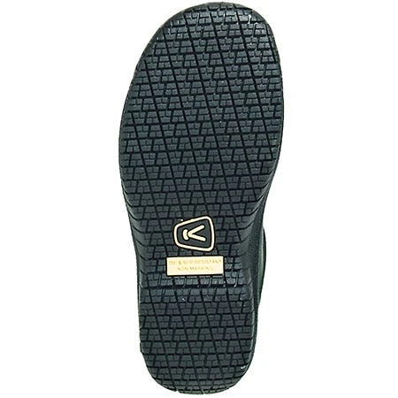 KEEN.Grip outsoles support your step. The non-marking rubber is shock-resistant to put a spring in every one of your steps. Rubber’s natural bounciness will help you rebound from every footfall you take. The rugged soles have been tested for ASTM F1677-96 Mark II non-slip safety requirements. They’ll keep your grip true, even on icy or slick floors and dangerous paths. Oil-resistance protects the tread on these non-slip chef shoes from common, corrosive liquids.