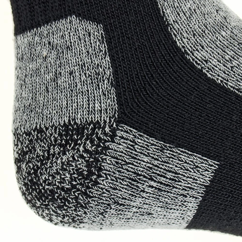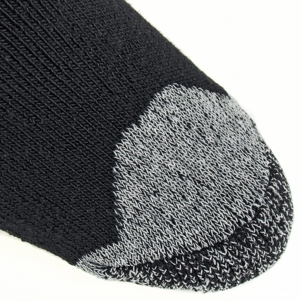 Constructed with the perfect blend of 40% cotton, 40% polyester, 17% nylon and 3% Spandex, you can count on these USA-made socks to offer your feet with the ideal fit. Not only do these black steel toe crew socks provide you with a great fit, but they also lend the comfort you desire to get through your busy day. In addition, these work socks have been crafted with a crew cut for maximum support.